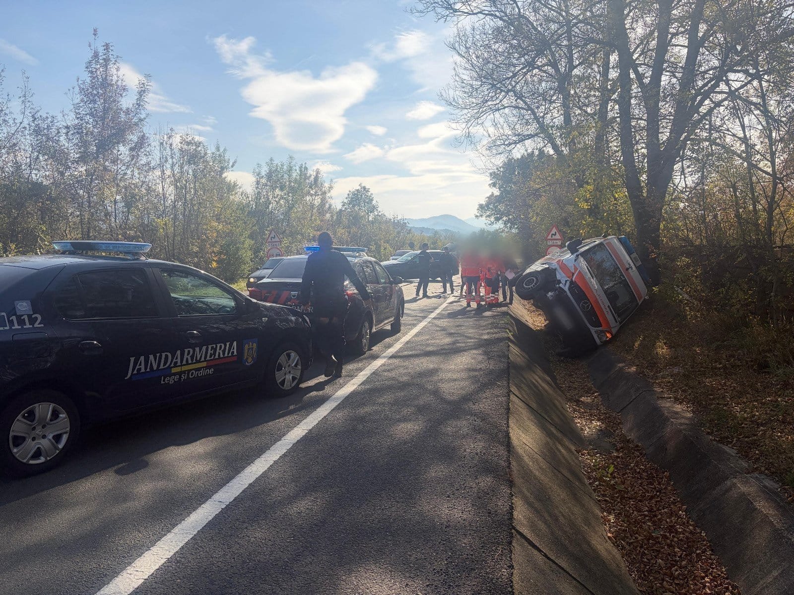 Intervenția jandarmilor a inclus apelarea serviciilor de urgență, evaluarea persoanelor implicate în accident, securizarea perimetrului și avertizarea celorlalți participanți la trafic.