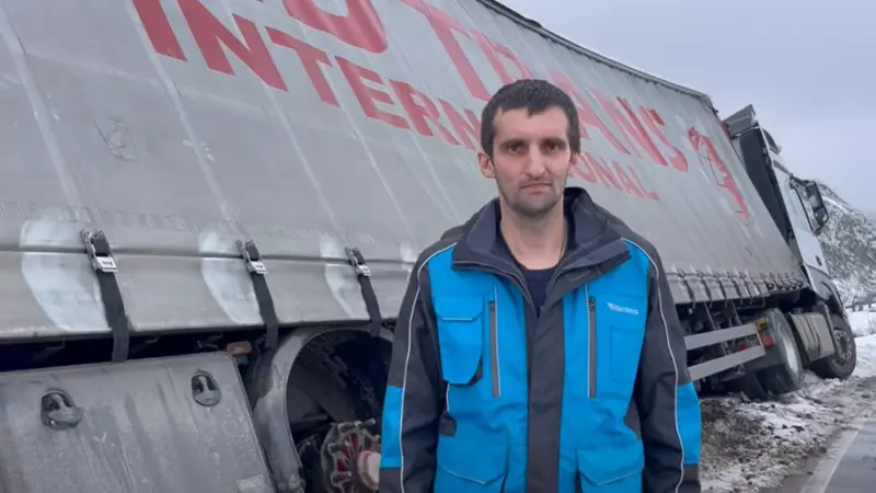 Un șofer român de TIR a mers să anunțe un accident la Poliție, după ce camionul lui s-a răsturnat. Când s-a întors la TIR-ul său, a realizat că a rămas fără roți și fără motorină.