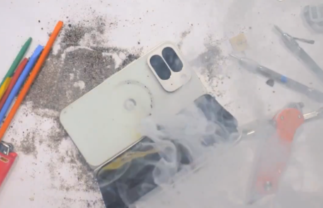 Nelson, renumit pentru testele sale extreme pe gadgeturi, își punea la încercare cel mai recent „pacient” – flagshipul pliabil de top al Google. În timp ce încerca să-l îndoaie pentru a verifica rezistența carcasei, panoul din spate s-a crăpat, iar în doar câteva secunde telefonul a luat foc, eliberând un nor gros de fum!