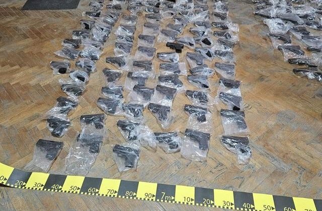 În total: 131 de pistoale și peste 100 de încărcătoare, toate fără muniție.